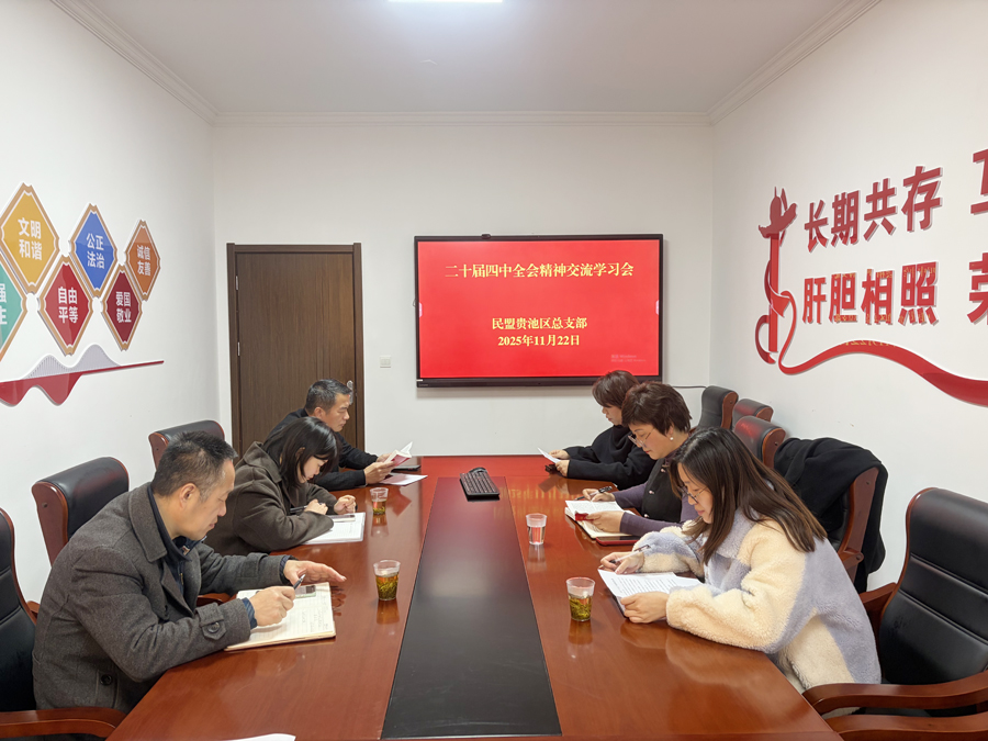 为深入学习贯彻中共二十届四中全会精神,切实把思想和行动统一到中共中央决策部署上来,11月22日,民盟池州市贵池区总支召开中共二十届四中全会精神学习交流会。民盟贵池区总支委员,区人大代表、政协委员参加会议,总支主委钱红芳主持会议。